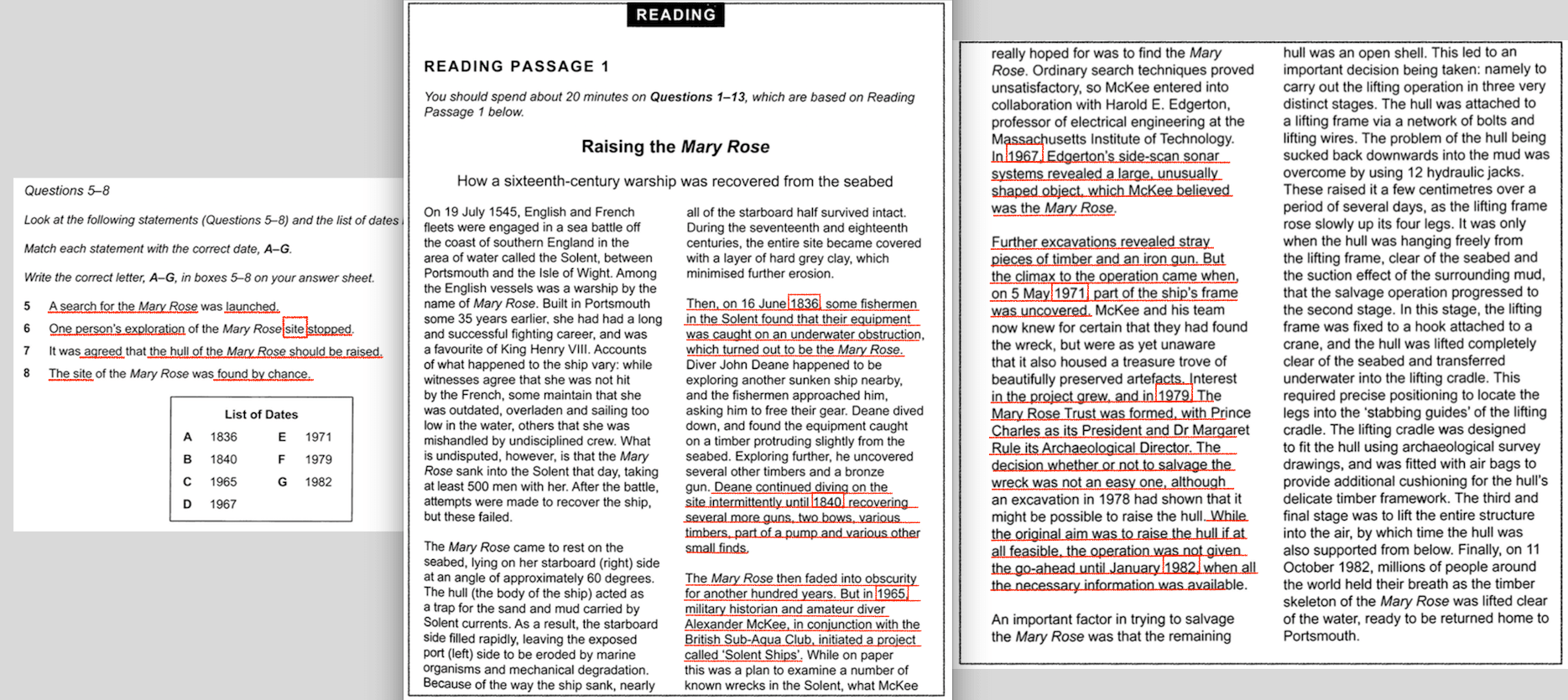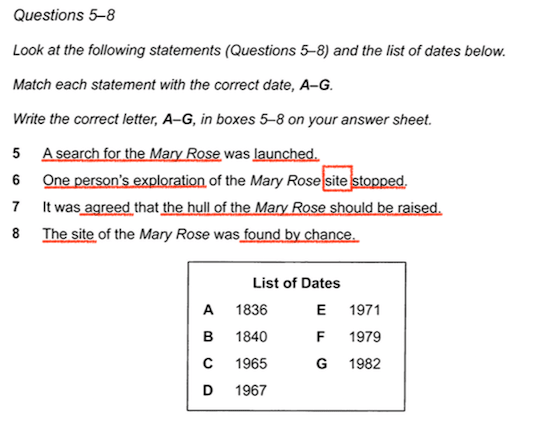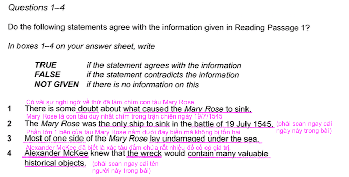Thứ ba, phải lọc và ghi nhớ các thông tin khó paraphrase được (ngày / tháng / năm, tên riêng, danh từ đặc thù, etc). Đây chính là những manh mối đắt giá giúp ta lần ra đáp án trong bài đọc.
