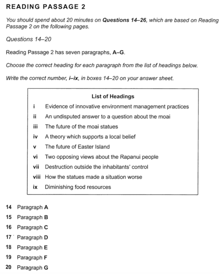 Nhìn vào passage này, chúng ta thấy có tổng cộng 13 câu hỏi chia cho 3 dạng bài tập: Matching headings, Summary Completion & List selection.