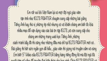 Nguyễn Quang Hà - Thái Bình - Em rất vui khi Việt Nam lại có một đội ngũ giáo viên tận tình như IELTS FIGHTER chuyên cung cấp những bài giảng Tiếng Anh hay thú vị
