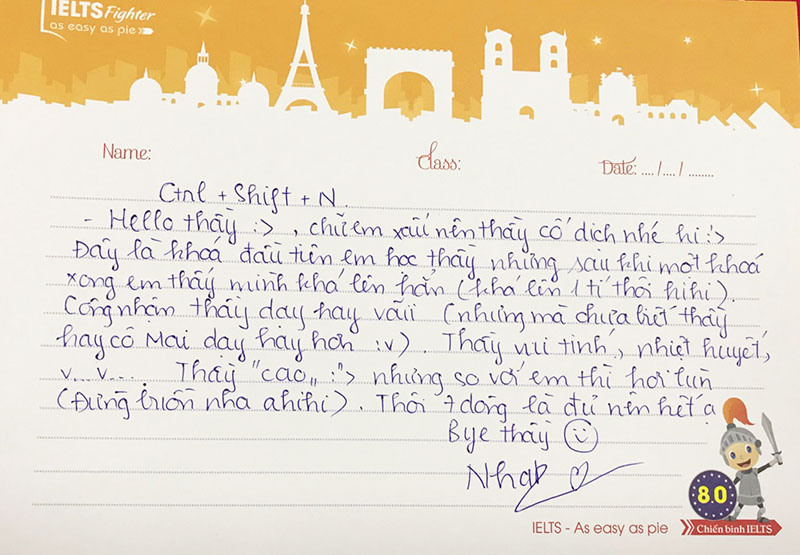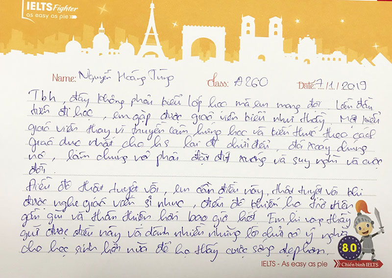 Gửi lời cảm ơn thầy Trung Đức, những tấm thư mang tâm sự ít nhiều được các bạn học viên đến thầy và IELTS Fighter.