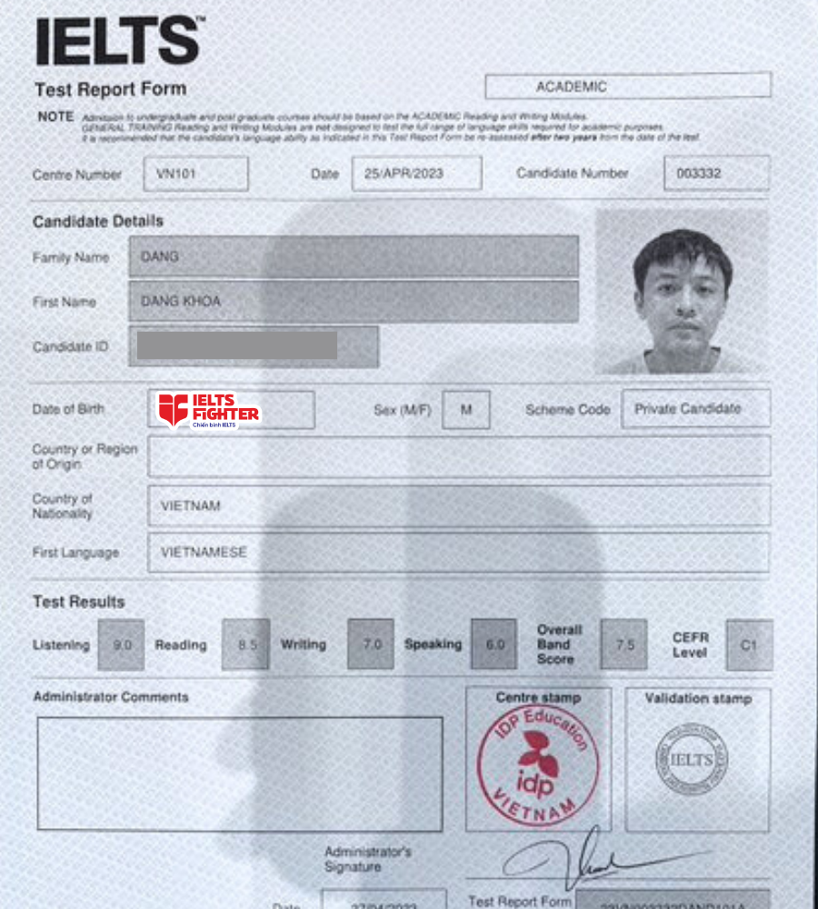 Chào các bạn! Mình là Đặng Đăng Khoa, học viên của IELTS Fighter Bà Hom 2 tháng trước. Hành trình chinh phục IELTS để đạt mục tiêu du học của bản thân mình thật sự khó khăn. Tuy chỉ học ở trung tâm trong một thời gian khá ngắn ngủi nhưng mình đã tiếp thu rất nhiều điều mới tại đây.