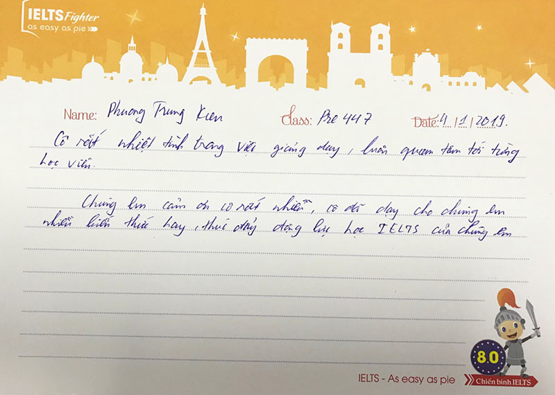 Dưới đây chính là những dòng tâm thư gửi đến cô An và IELTS Fighter của các bạn học viên khóa vừa rồi: