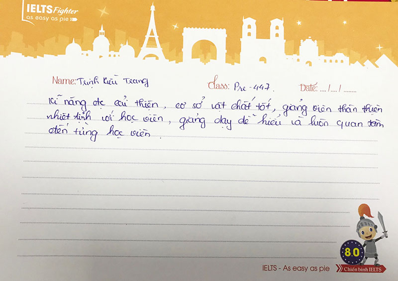 Một tâm thư rất dài nhưng từ một bạn không đề tên. Có thể là ngượng :)). Lời cảm ơn sâu sắc gửi đến cô giáo, đội ngũ tư vấn viên, các anh chị trong lớp của bạn là lời động viên giúp IELTS Fighter tiếp tục phát triển, cố gắng hơn nữa trong tương lai.