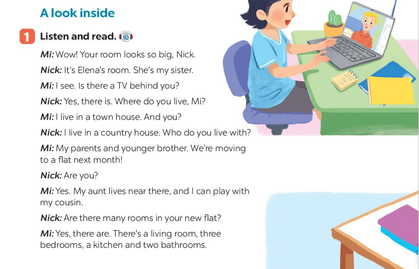 Mi: Mình sống trong một ngôi nhà phố. Còn cậu?