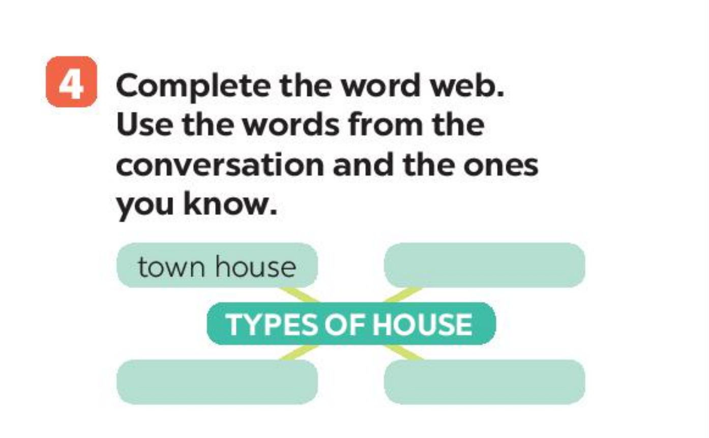 Bài 4. Complete the words web. Use the words from the conversation and the ones you know.