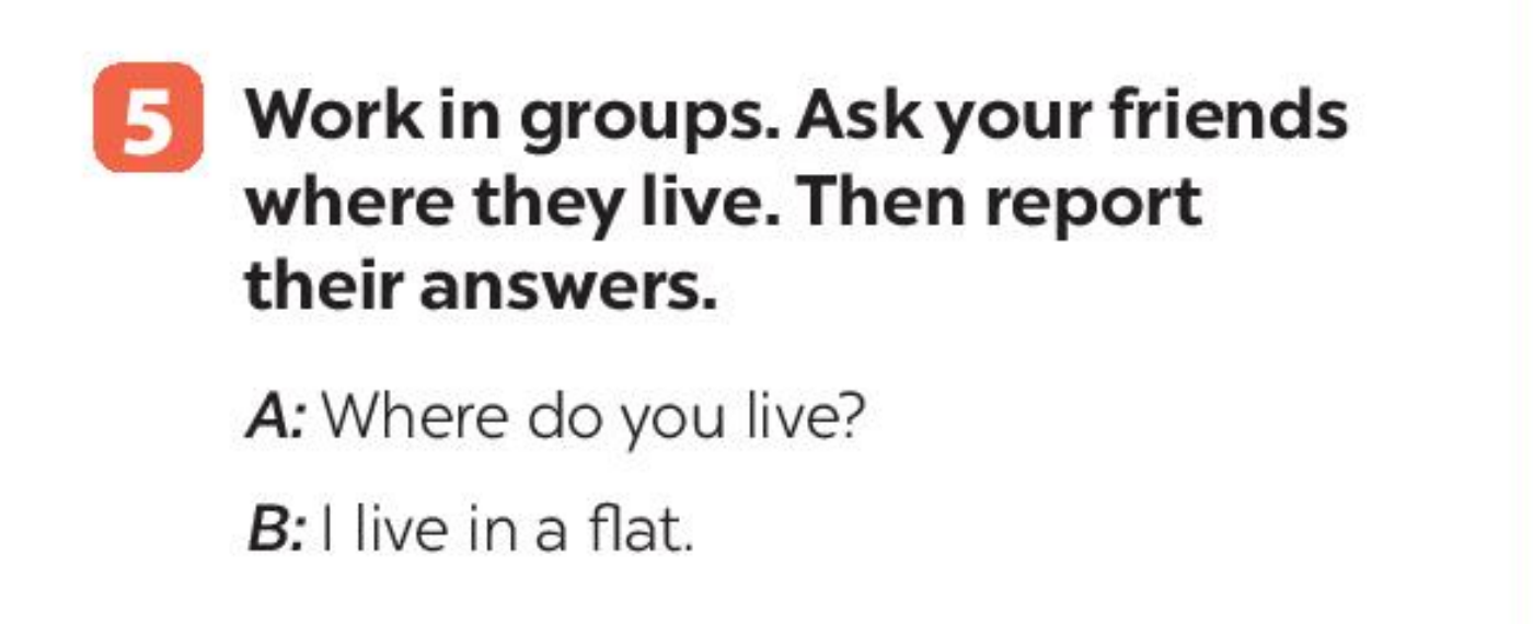 Làm việc theo nhóm. Hỏi các bạn của em về nơi họ sống.
