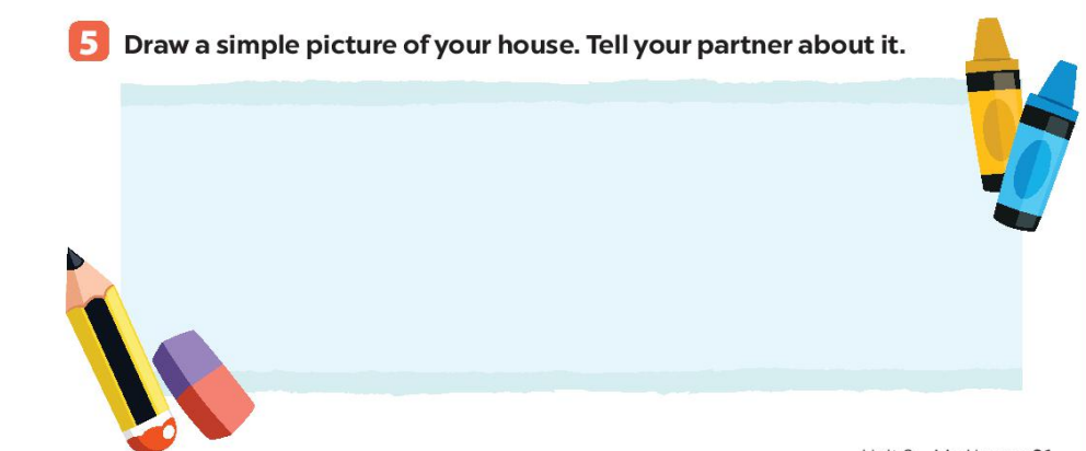 Bài 5: Draw a simple picture of your house. Tell your partner about it.
