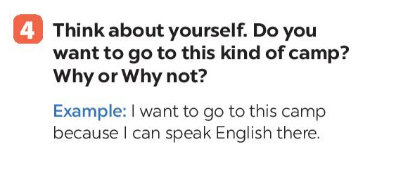 Bài 4. Think about yourself. Do you want to go to this kind of camp? Why/ Why not?