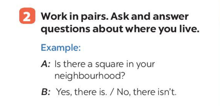 Bài 2. Work in pairs. Ask and answer questions about where you live.