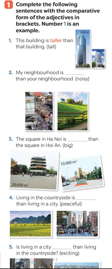 Bài 1. Complete the following sentences with the comparative form of the adjectives in brackets. Number 1 is an example.