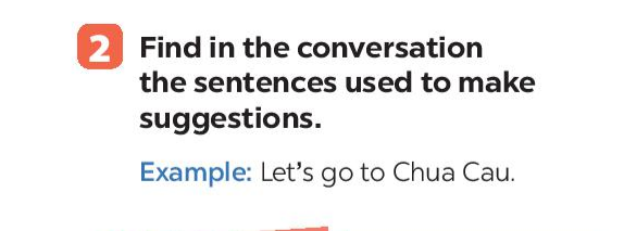 Bài 2: Find in the conversation the sentences used to make suggestions.