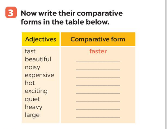 Bài 3: Now write their comparative forms in the table below.