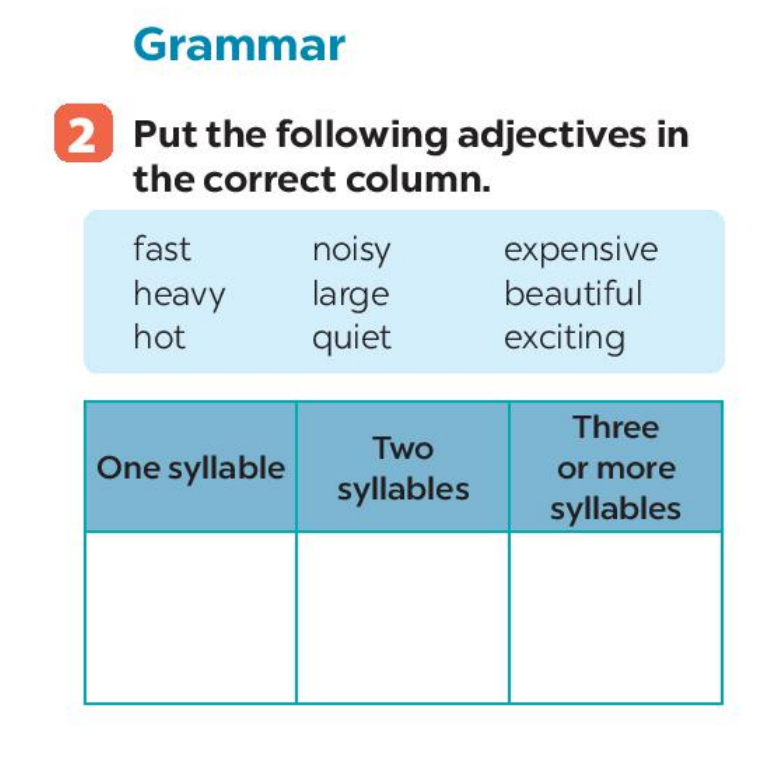 | One syllable | Two syllables | Three or more syllables |