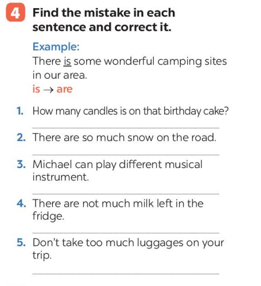 Bài 4. Find the mistake in each sentence and correct it.