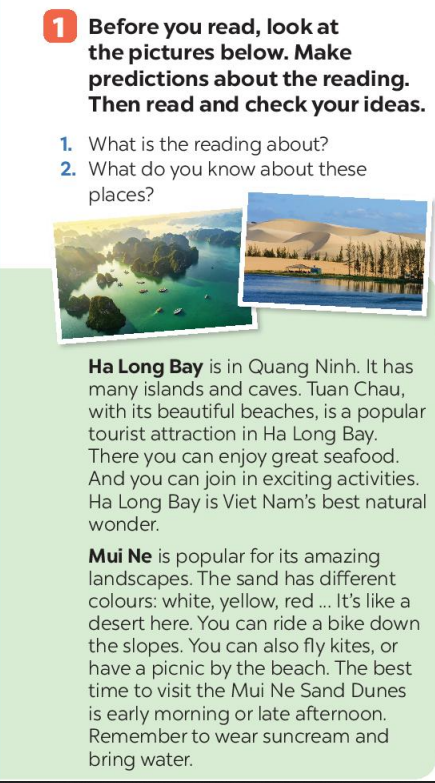 1. The reading about Ha Long Bay and Mui Ne - the natural wonders of Vietnam.