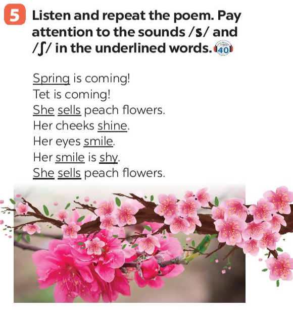 Bài 5. Listen and repeat the poem. Pay attention to the sounds /s/ and /ʃ/ in the underlined words.