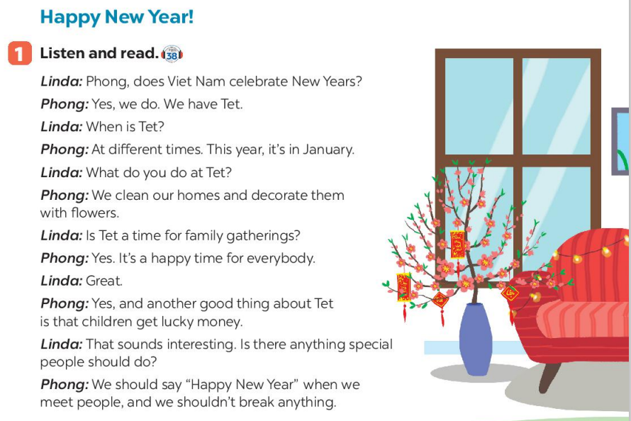 Phong: Chúng ta nên nói "Chúc mừng năm mới" khi gặp mọi người, và chúng ta không nên làm vỡ bất cứ món đồ nào.