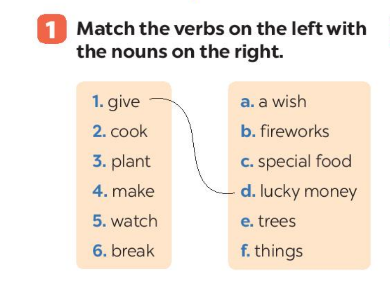 Bài 1. Match the verbs on the left with the nouns on the right.