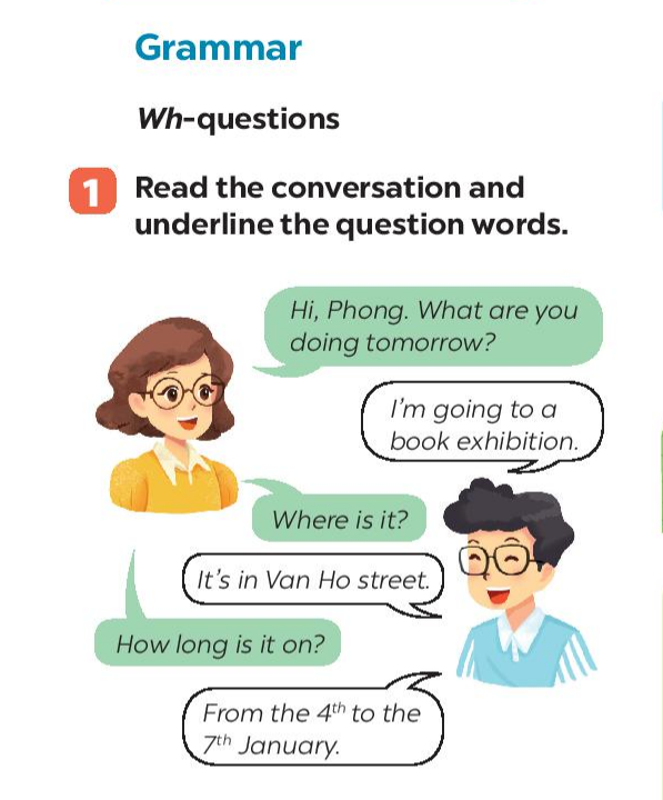 (Đọc hội thoại và gạch dưới những từ để hỏi)