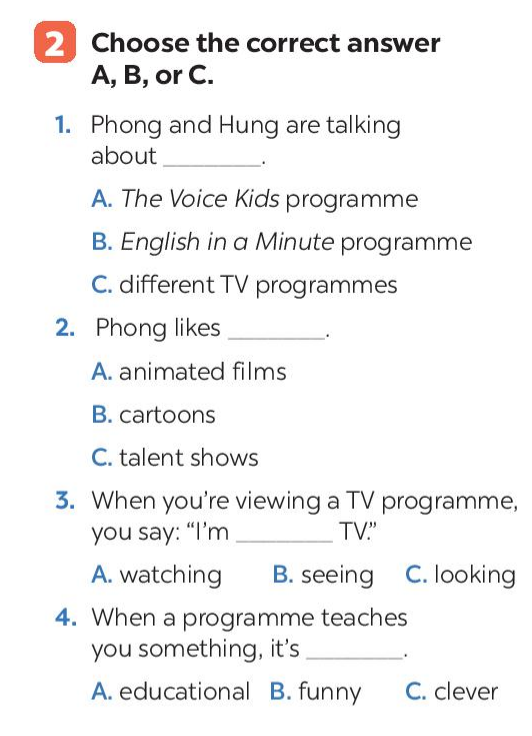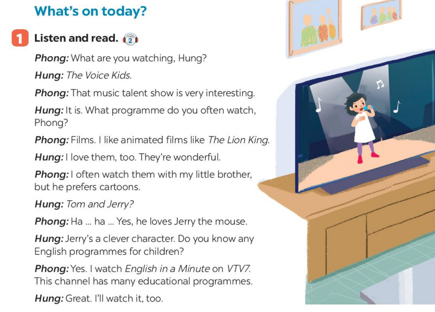 1. Phong and Hung are talking about different TV programmes.