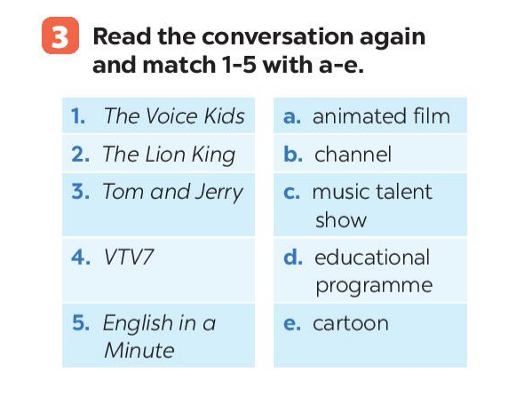 (Đọc lại bài hội thoại và nối 1-5 với a-e)