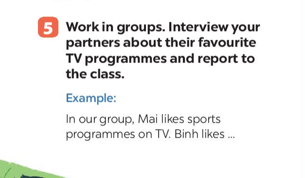 (Làm việc theo nhóm. Phỏng vấn các bạn về chương trình TV yêu thích và báo cáo với cả lớp)