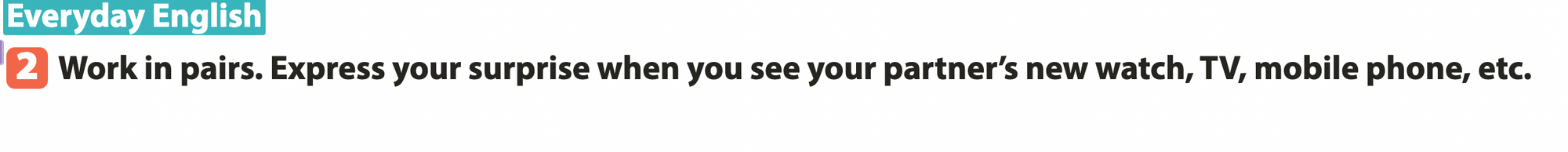 Bài 2. Work in pairs. Express your surprise when you see your partner’s new watch, TV, mobile phone, etc.