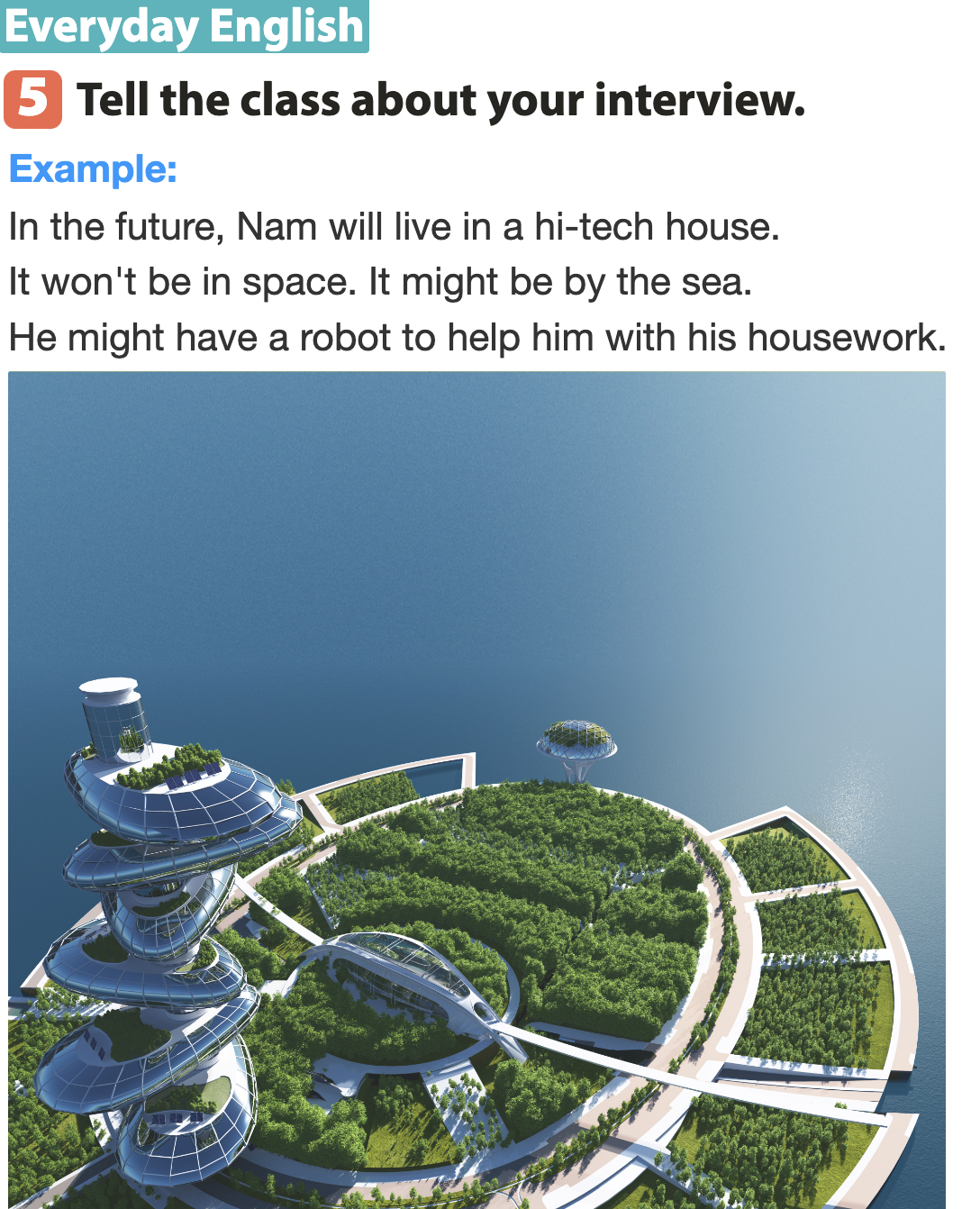 (Trong tương lai, Nam sẽ sống trong một ngôi nhà công nghệ cao.)