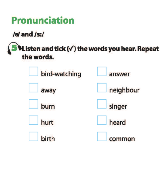 Bài 5. Listen and tick (√) the words you hear.