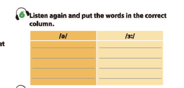 Bài 7. Listen to the sentences and tick /ə/ or /ɜː/. Practice the sentences.