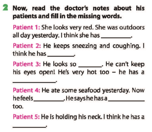 Bài 2. Read the doctor’s notes about his patients and fill in the missing words.
