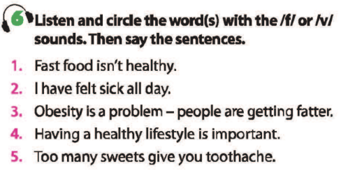 Bài 6. Listen and circle the word(s) with the /f/ or /v/ sounds. Then say the sentences.