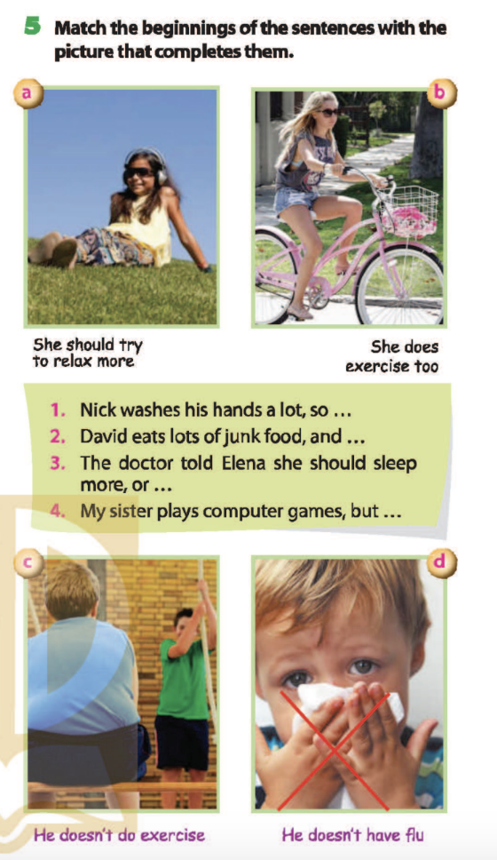 Bài 5. Match the beginnings of the sentences with the pictures that complete them.
