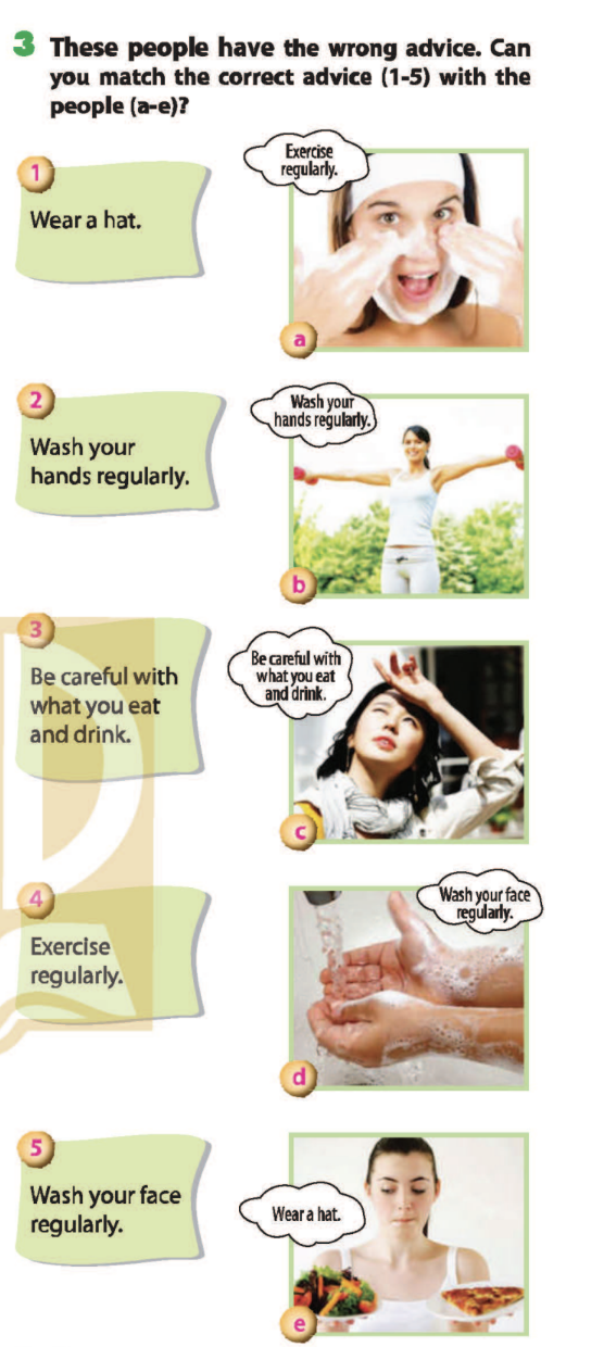 Bài 3. These people have the wrong advice. Can you match the correct advice (1-5) with the people (a-e)?
