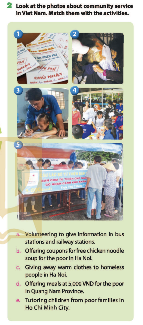 Bài 2. Look at the photos about community service in Viet Nam. Match them with the activities.