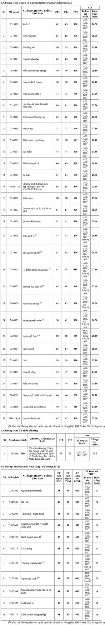 Điểm chuẩn trường Đại học Kinh tế Hồ Chí Minh