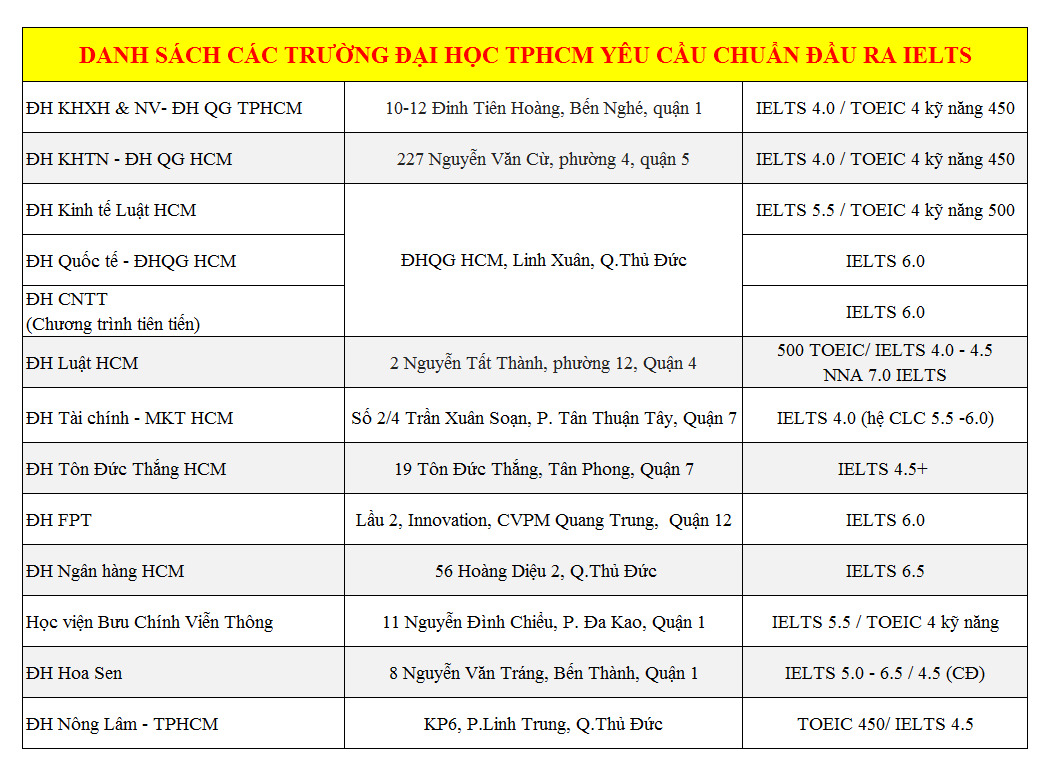 Danh sách các trường đại học tại TPHCM yêu cầu chuẩn IELTS