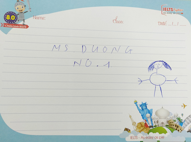 Phương Hà: " Ms.Dương, wish you all the best!" Bạn Hà còn vẽ hình minh họa của Ms.Dương vừa cute vừa độc đáo ấn tượng thế đấy!!!