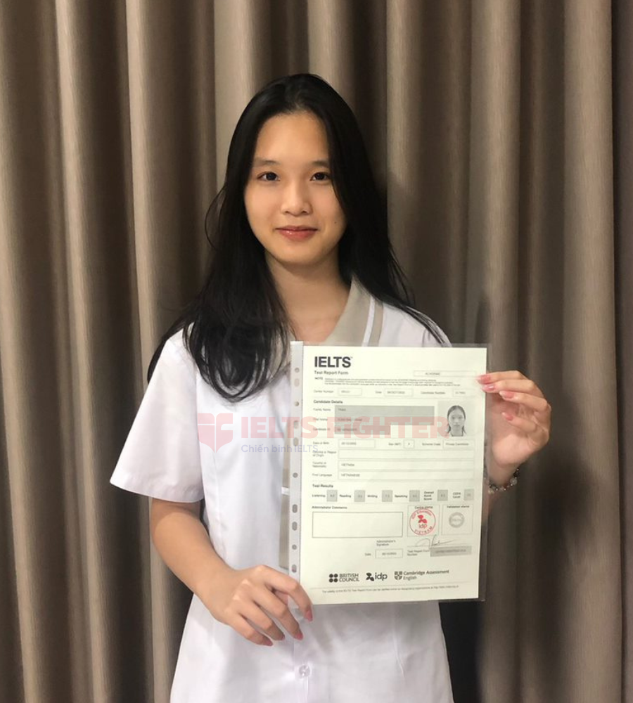Dưới sự dẫn dắt của các thầy cô tại IELTS Fighter, em cho rằng bản thân đã thực sự được "Phát triển toàn diện cả 4 kỹ năng IELTS" và đạt điểm số vượt ngoài mong đợi. Cùng IELTS Fighter lắng nghe đôi chút từ cô gái "con nhà người ta" này nha!