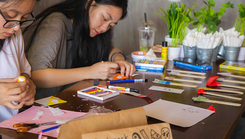 Các bạn tự làm đồ handmade thú vị. Ai cũng say mê và hào hứng với không gian nghệ thuật này