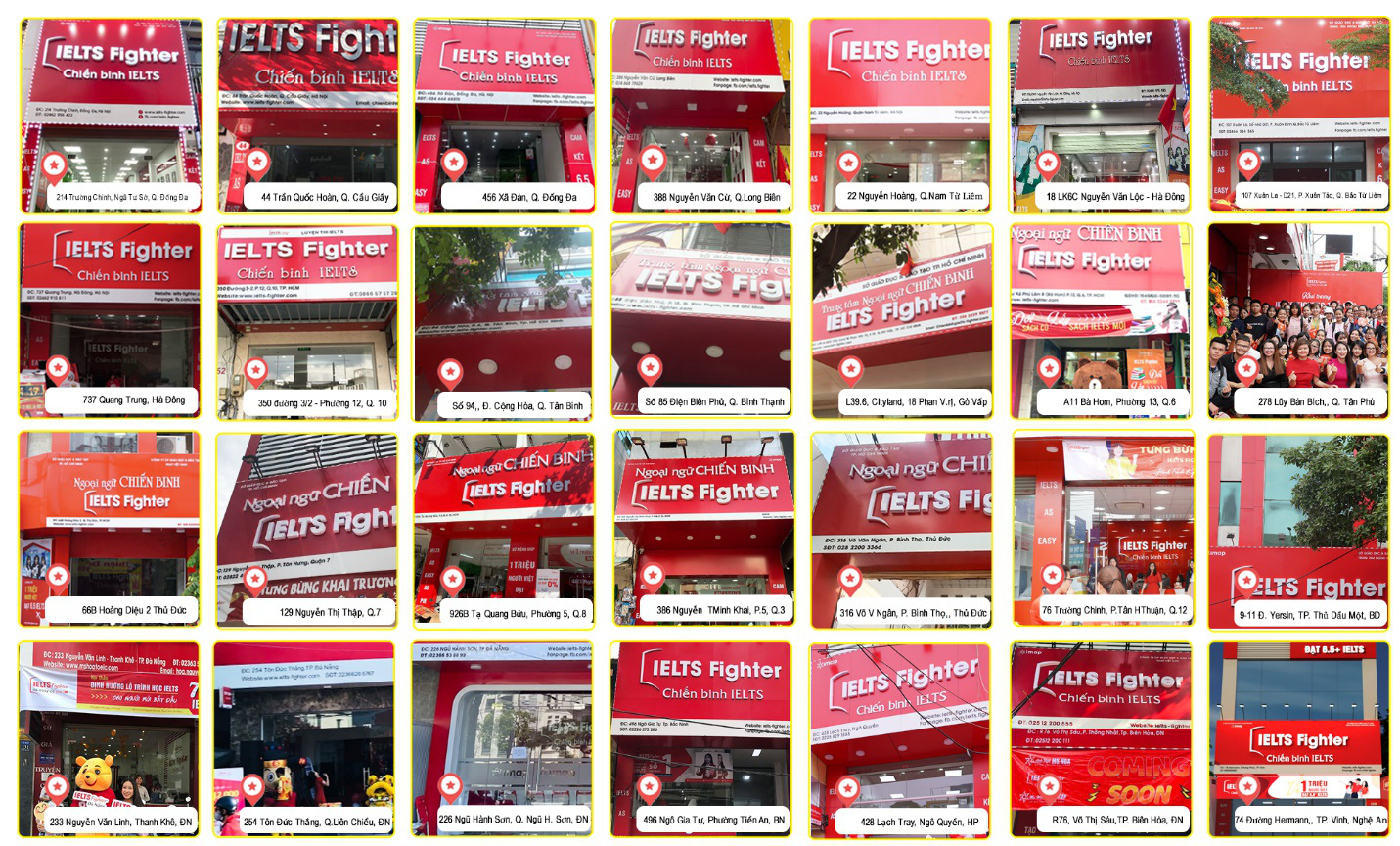 Bên cạnh hệ thống 24 cơ sở vẫn hoạt động dạy học đều đặn thông qua các hình thức học trực tiếp hoặc online, IELTS Fighter tiếp tục khai trương thêm 5 cơ sở mới đẩy số chi nhánh lên đến 29 cơ sở toàn quốc.