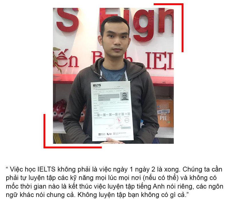 Vì thế, bạn quyết định tham gia học tại IELTS Fighter. Và sau thời gian học tập, Huy đã hoàn thành mục tiêu với điểm số 7.0 IELTS trong đó Speaking đạt 7.5 đấy.