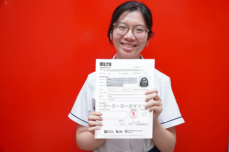 Hiện đang là học sinh trường Phổ Thông Năng Khiếu, Hoài Minh tìm đến IELTS Fighter với mong muốn có thể dùng tấm bằng IELTS để có thêm lợi thế khi xét tuyển THPTQG. Cậu bạn rụt rè ngày nào với mớ kiến thức lộn xộn về tiếng Anh giờ đây đã tự tin với 7.0 IELTS trong tay.