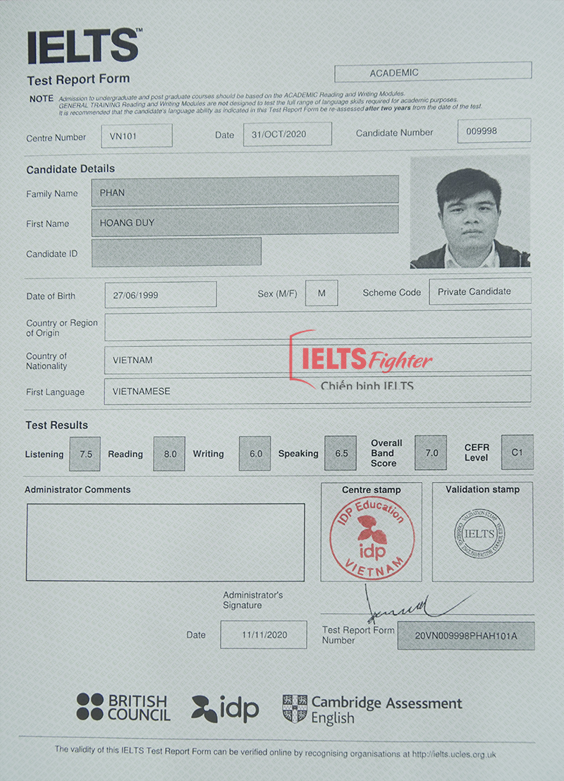 Xin cảm ơn và chúc mừng Hoàng Duy với điểm số IELTS tuyệt vời của mình, chắc hẳn giờ đây cậu sinh viên Hoàng Duy đã có thêm nhiều tự tin trong việc sử dụng tiếng Anh cho bản thân và cả công việc về sau. Các em ơi, trong hành trình chinh phục IELTS dù có khó khăn và đôi lúc nản lòng, thì các bạn hãy đừng ngần ngại để lại lời nhắn hay inbox cho IELTS Fighter nhé, chúng mình luôn sẵn lòng để giúp đỡ các bạn.