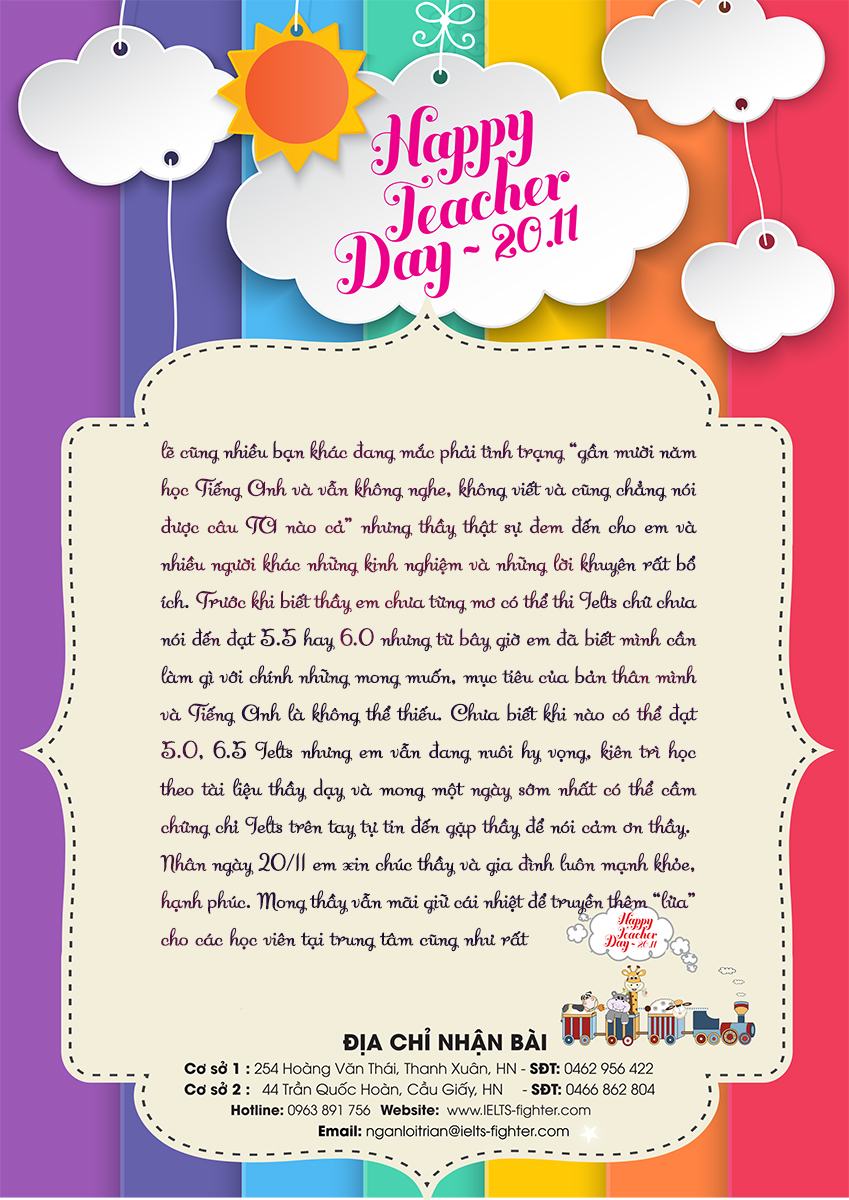Chi tiết thể lệ và giải thưởng xem tại: https://ielts-fighter.com/tin-tuc/Cuoc-thi-34-Ngan-loi-tri-an-34-Chao-mung-Ngay-nha-giao-Viet-Nam-20-11_mt1477303072.html