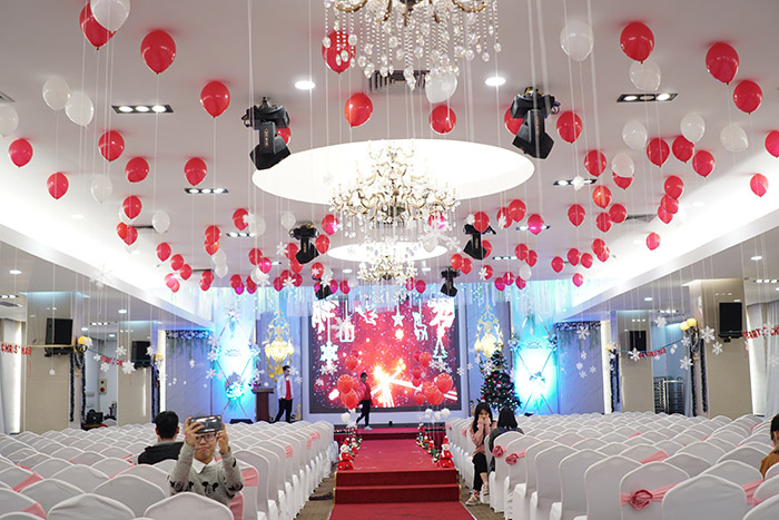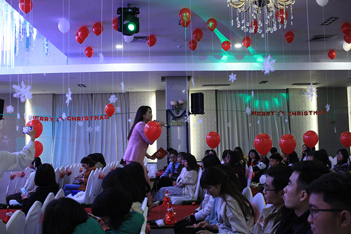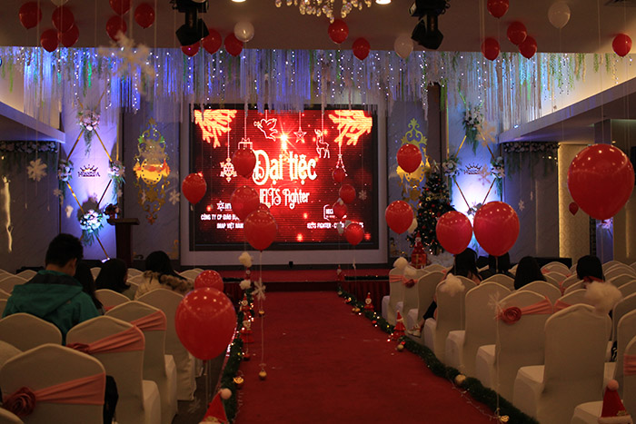 Chương trình ĐẠI TIỆC IELTS cùng IELTS Fighter được diễn ra tại Khách sạn Hoàng Gia 2, số 39, ngõ 74 Nguyễn Thị Định, Nhân Chính, Thanh Xuân, Hà Nội. Những khu vực check in lung linh sắc màu Giáng Sinh, khu vực photobooth cực đẹp, đến những chùm bóng bay, bông tuyết trong khuôn phòng chính của hội trường làm nên một không gian đẹp, ấm áp để các bạn check in khám phá.