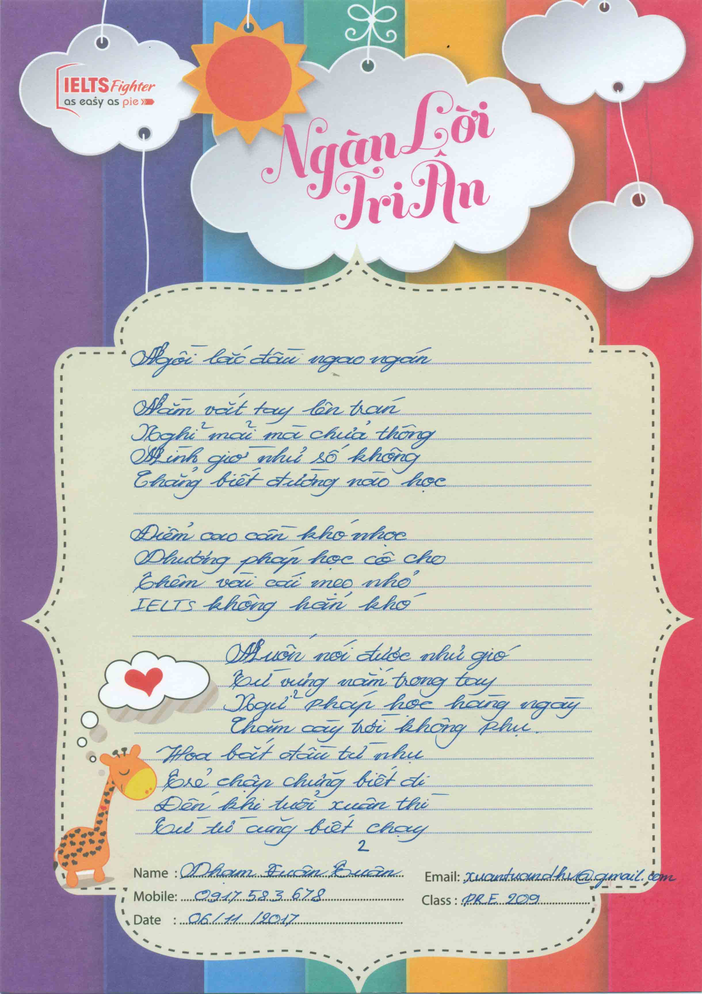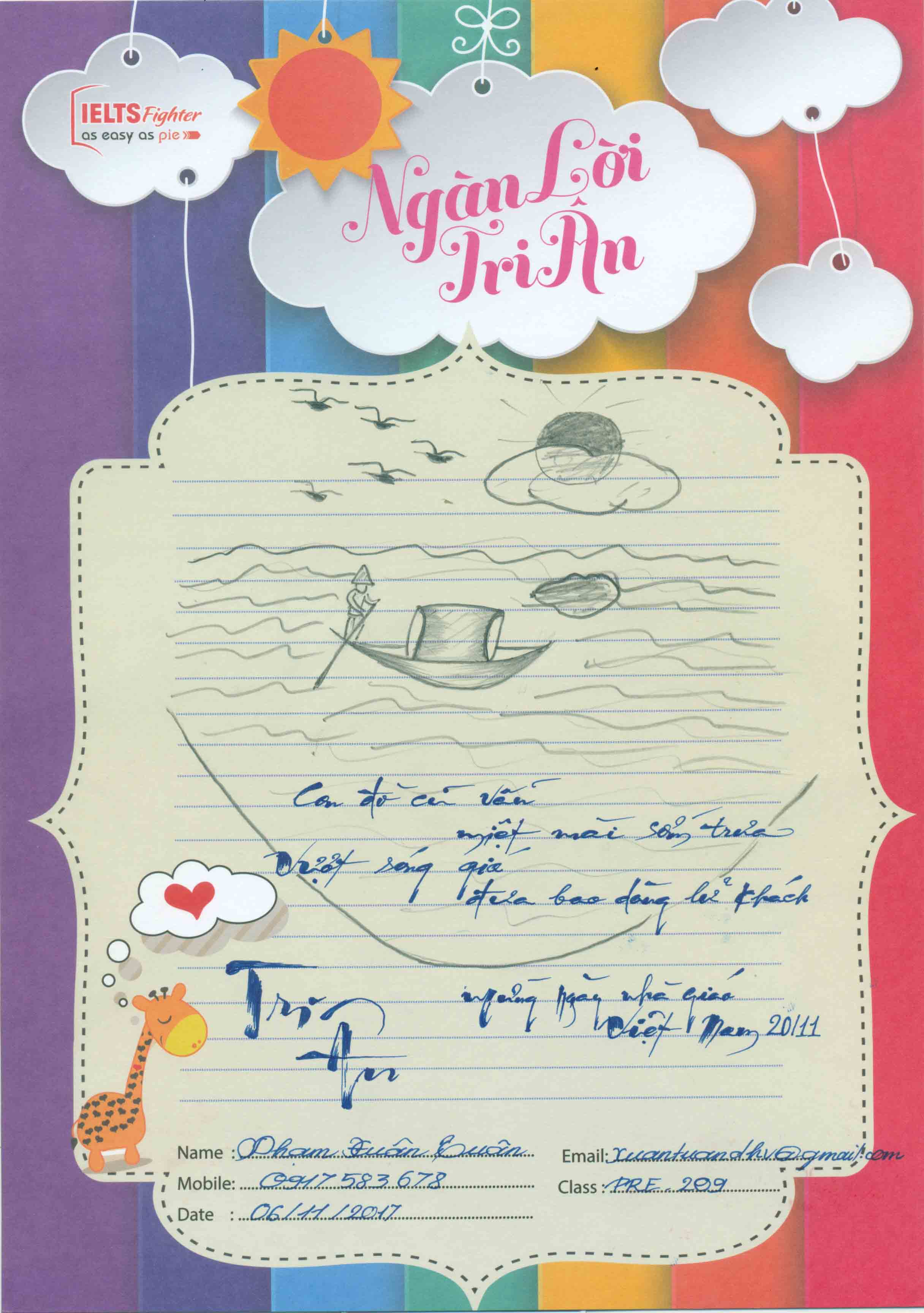 Chi tiết thể lệ và giải thưởng xem tại: https://ielts-fighter.com/tin-tuc/Cuoc-thi-34-Ngan-loi-tri-an-2017-34-Chao-mung-ngay-Nha-giao-Viet-Nam-20-11_mt1509461191.html