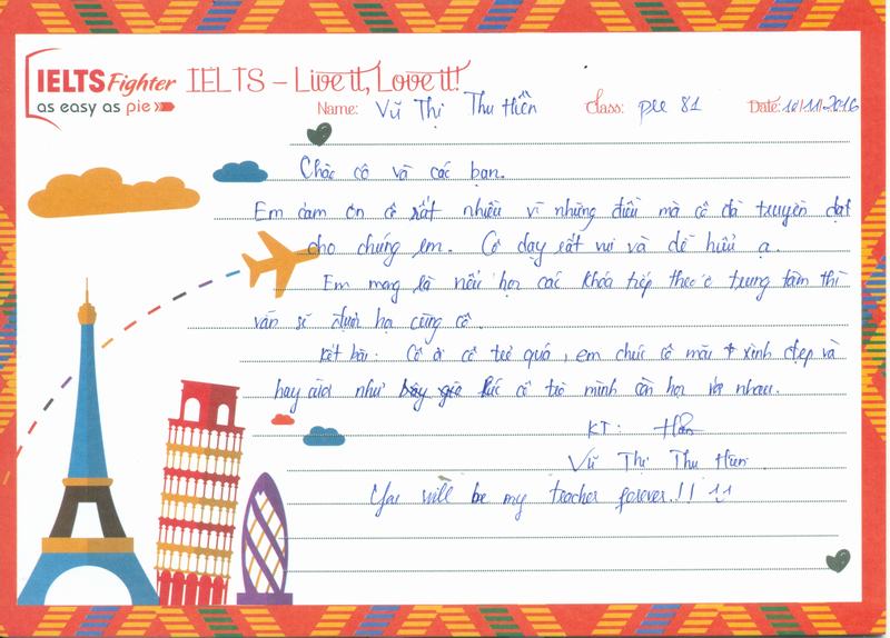 Em rất cảm ơn cô đã dạy chúng em rất nhiệt tình, giúp chúng em hiểu hơn về IELTS.