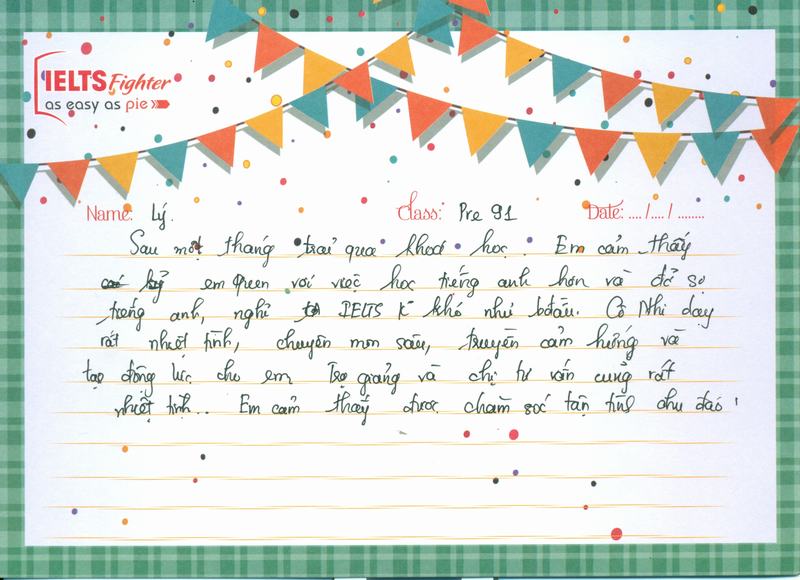 Hãy cùng IELTS Fighter lắng nghe xem các bạn ấy chia sẻ gì về cô giáo, về các bạn cùng lớp và về trung tâm nhé!
