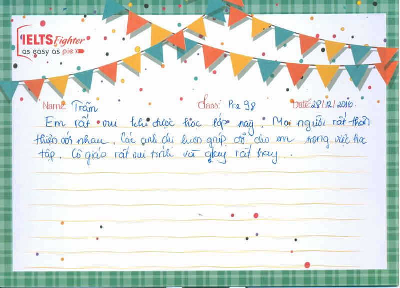 Sau hơn 1 tháng học tập tại IELTS Fighter, em đã tiếp thu được thêm nhiều kiến thức, trau dồi thêm kiến thức Tiếng Anh của mình.